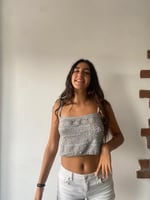 Realizado con hilo de algodón e hilo plata con lentejuelas
