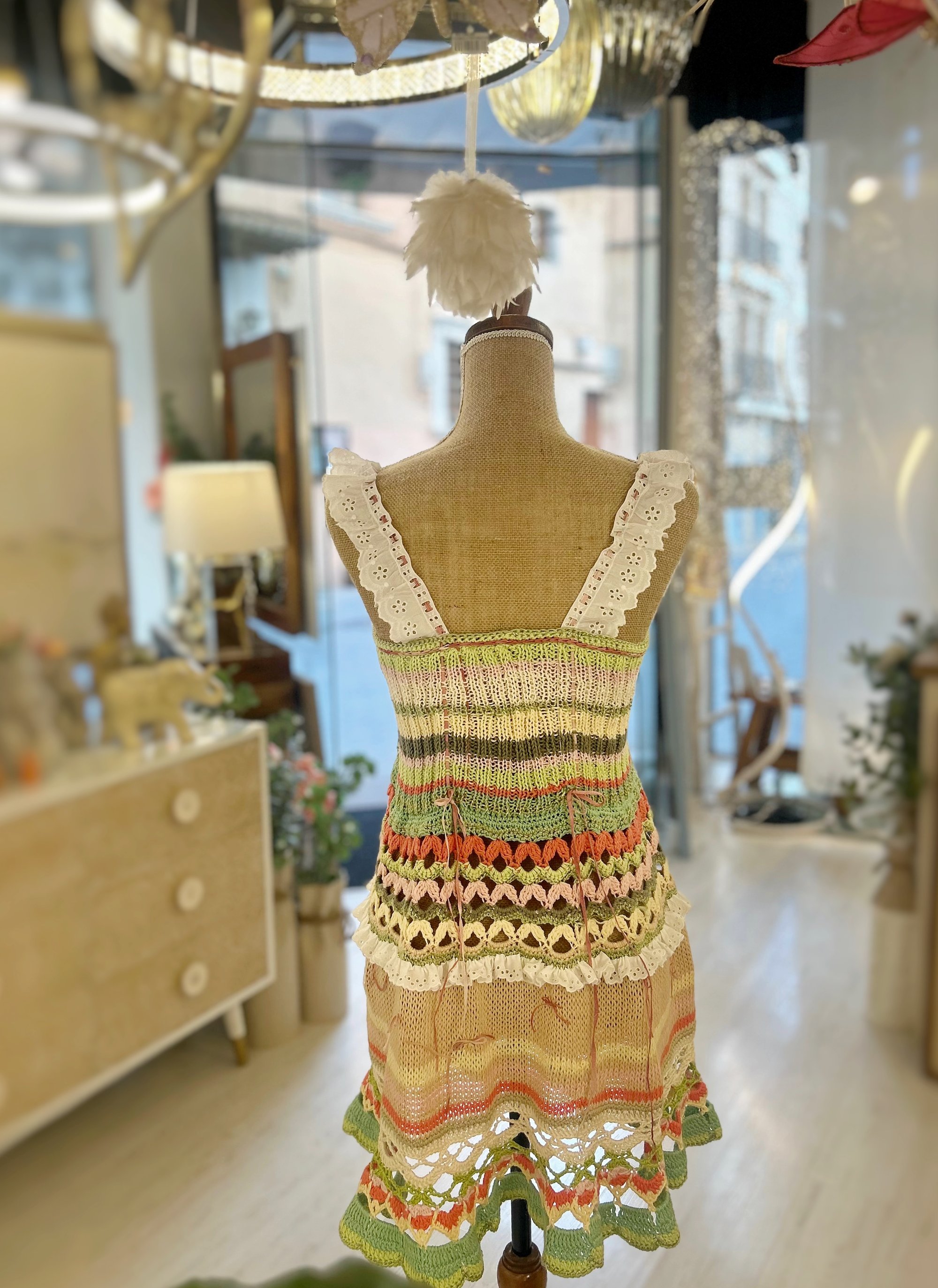 Realizado con hilos de algodón en verdes, rosas, coral, amarillos ...
